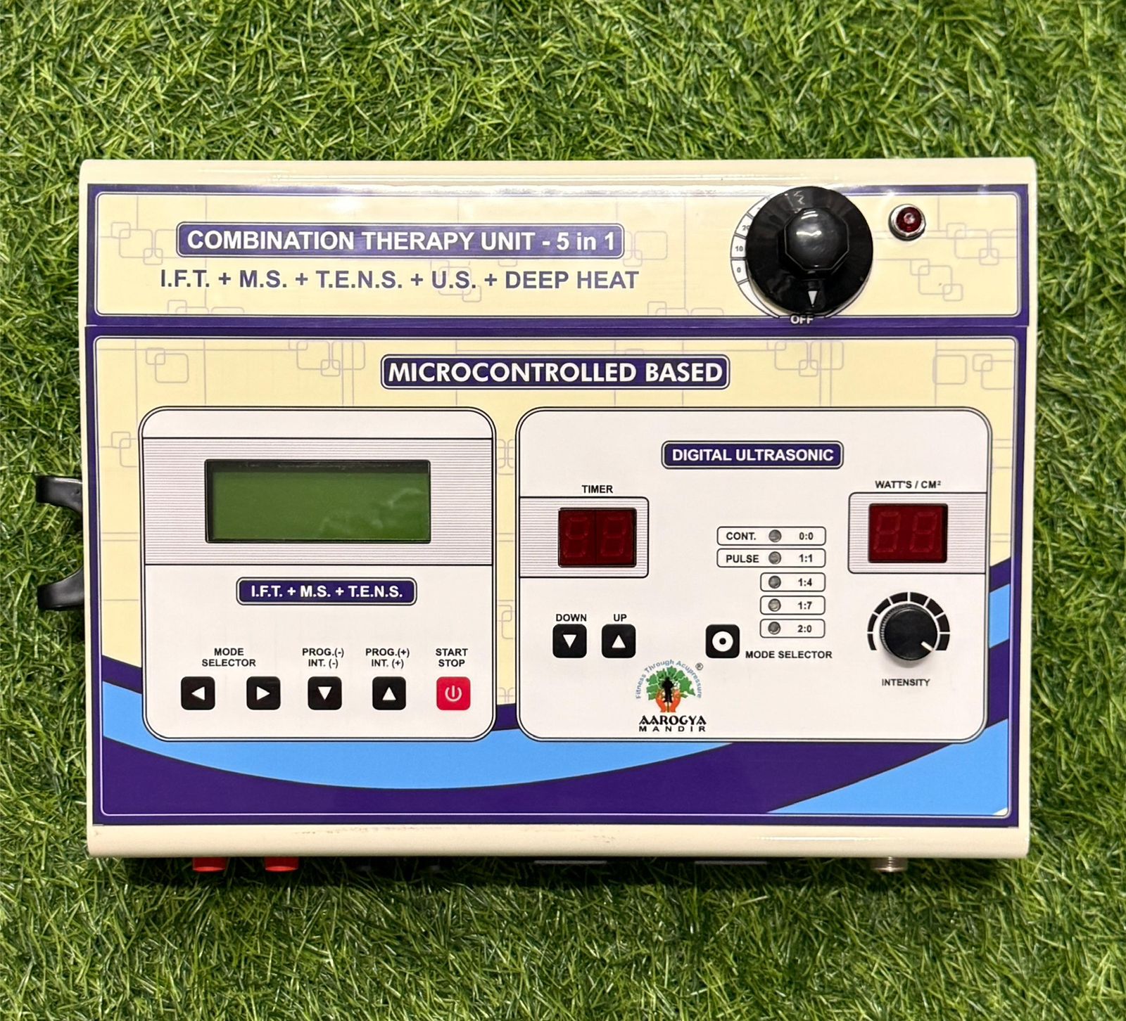 DescriptionProduct details: Usage Clinical, Hospital Therapy Modes4 Pole, 4 Pole Vector 900, 4 Pole Vector 450, 2 Pole per-modulated Carrier Frequency4 and 2 kHz Base Frequency0 to 150 Hz Sweep Frequency0 to 100 Hz Sweep Modulation Programs1/1 Sec, 1/5 Sec, 6/6 Sec Surge ON Time1 -10 sec. (in 1 Sec.variation) Surge OFF Time1 – 6 sec. (in 1sec. variation) Burst Frequency1 – 4 Hz Minimum Order Quantity1 Piece Product description: We are offering IFT, MS, TENS, Ultrasound, Heat Combination Machine to our clients